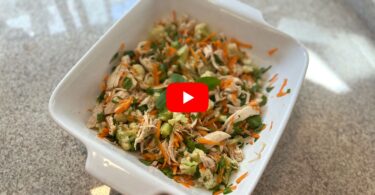 Esta salada de frango e arroz para cães está repleta de vegetais crus e saudáveis que o seu cão...